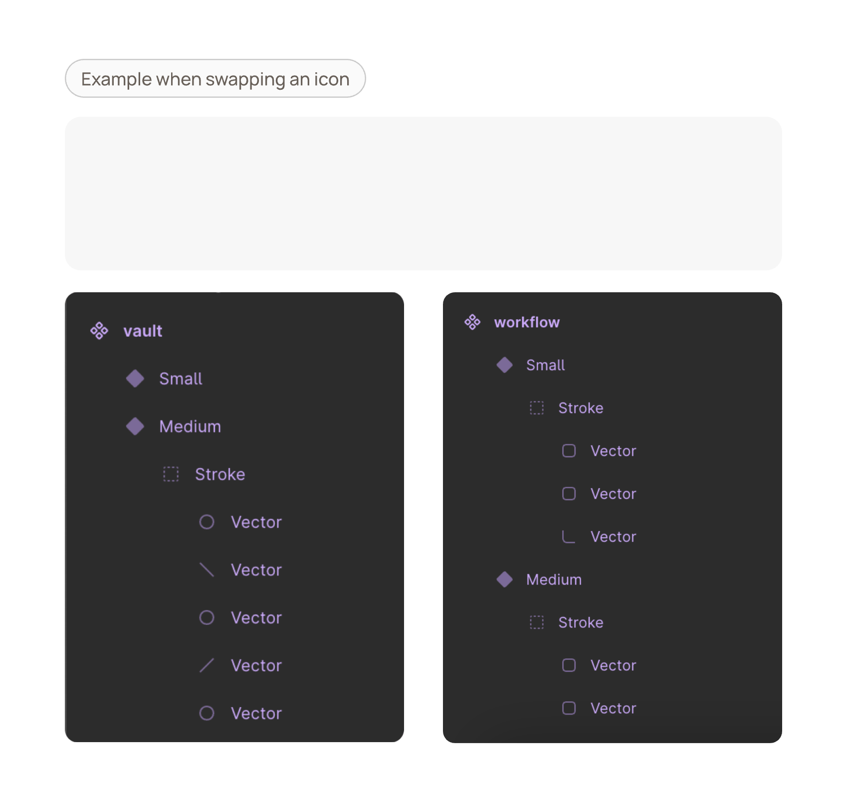 To solve this, my role was to research and implement best practices for managing icons. I focused on standardizing the structure of each icon's vector layers. This involved ensuring all icons followed the same naming conventions, for example, grouping all stroke elements under a layer named "strokes" and all filled areas under a layer named "fills." By standardizing the structure and naming, when an icon is swapped, Figma can correctly apply the new color across all parts of the icon.